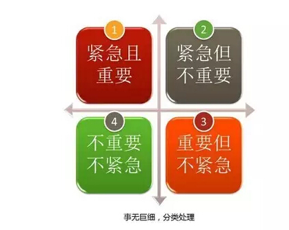 每個人在時間上都有兩個范圍:內圈的是影響范圍,外圈的是關心范圍。成功的時間管理應是擴大影響范圍,縮小關心范圍,在不重要的事上不浪費時間。在進入時間管理的學習前,必須先理清所有工作的重要度和緊迫度,列出工作的先后順序,弄清楚每天的工作目標和重點,在時間上做好安排和分配。